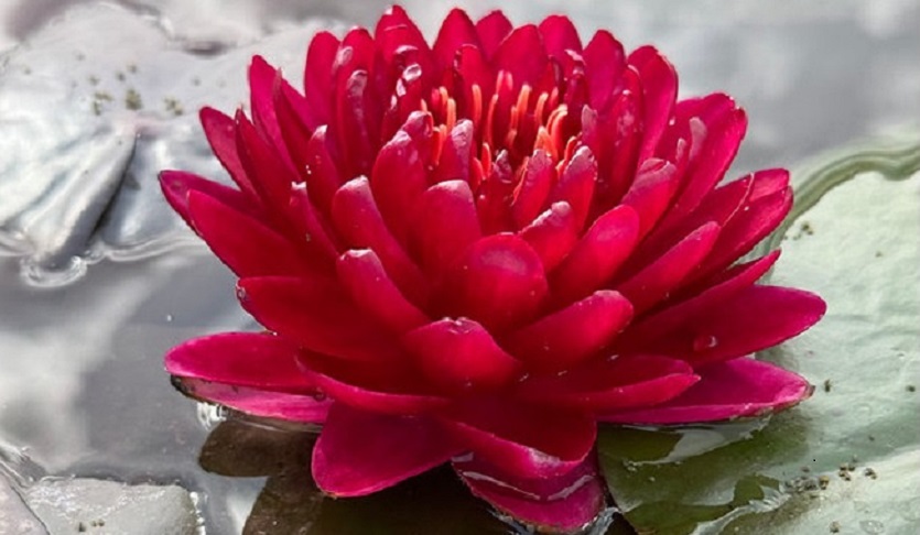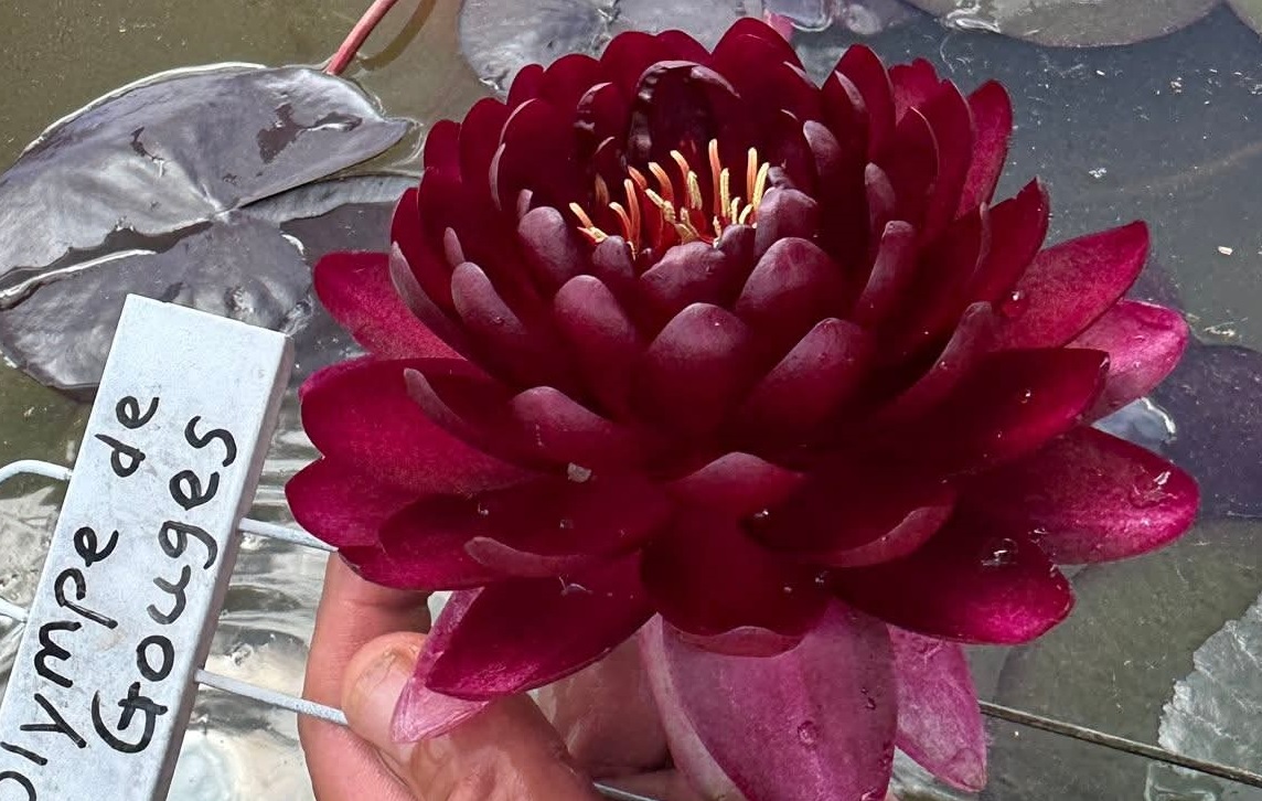N. Olympe de Gouges (Олимпия де Гуж). Кувшинка селекции Флориан Эно. Шаровидные махровые цветки от темно-красного до контрастно-красного цвета, в диаметре до 15 см, могут расти в полутени. Листья зеленые с закрытым разрезом, края приподнятые, до 22 см. Глубина посадки 40- 60 см, диаметр покрываемой листьями поверхности до 1,2 м. # купить кувшинку # купить нимфею # купить водяную лилию # кувшинка # нимфея # водяная лилия # растение для пруда #